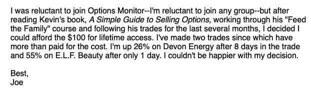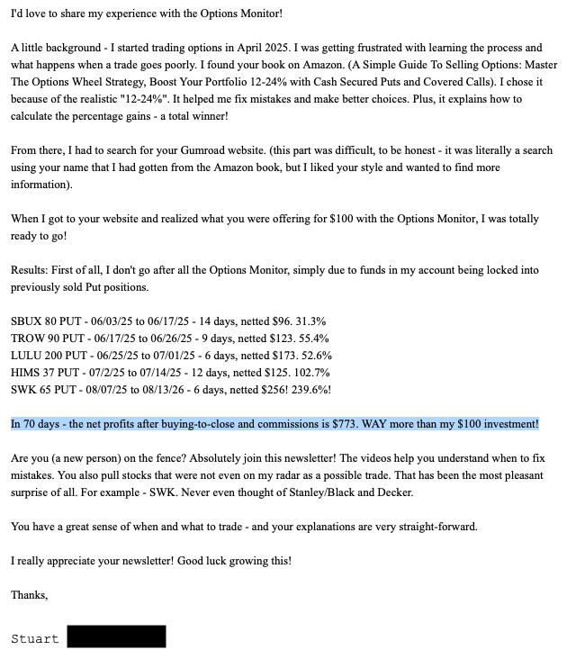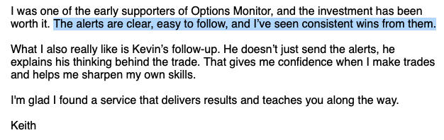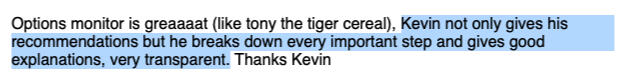 Disclaimer: Club members have not been compensated for their testimonials.The information provided by Options Monitor is for educational purposes only and should not be considered financial advice. Options trading involves risk and is not suitable for every investor. Past performance is not indicative of future results. Always do your own due diligence before placing any trade.Kevin Smith / Options Monitor is not authorised or regulated by the Financial Conduct Authority. Nothing on this website should be construed as investment advice or a personal recommendation.Simple Refund Promise: Not happy? Just reply to any email within 30 days for a full refund — no questions asked. (Refunds not available once you’ve accessed member content or downloaded tools.)Need help? e: [email protected]